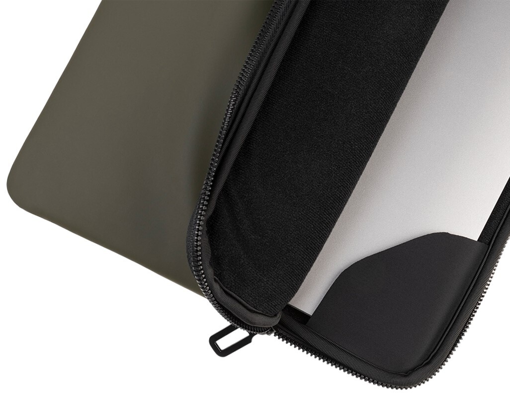 Матеріал чохла має водовідштовхувальні властивості, тому він надійно захищає від легкого дощу, розлитих напоїв чи конденсату. Внутрішній відсік з м'якою підкладкою й антиковзкими куточками надійно фіксує ноутбук, запобігаючи ковзанню всередині навіть при активному русі. Зовнішня кишеня дозволяє швидко покласти зарядку, мишу, кабелі, блокнот чи інші дрібниці — все під рукою без потреби відкривати основний відсік.