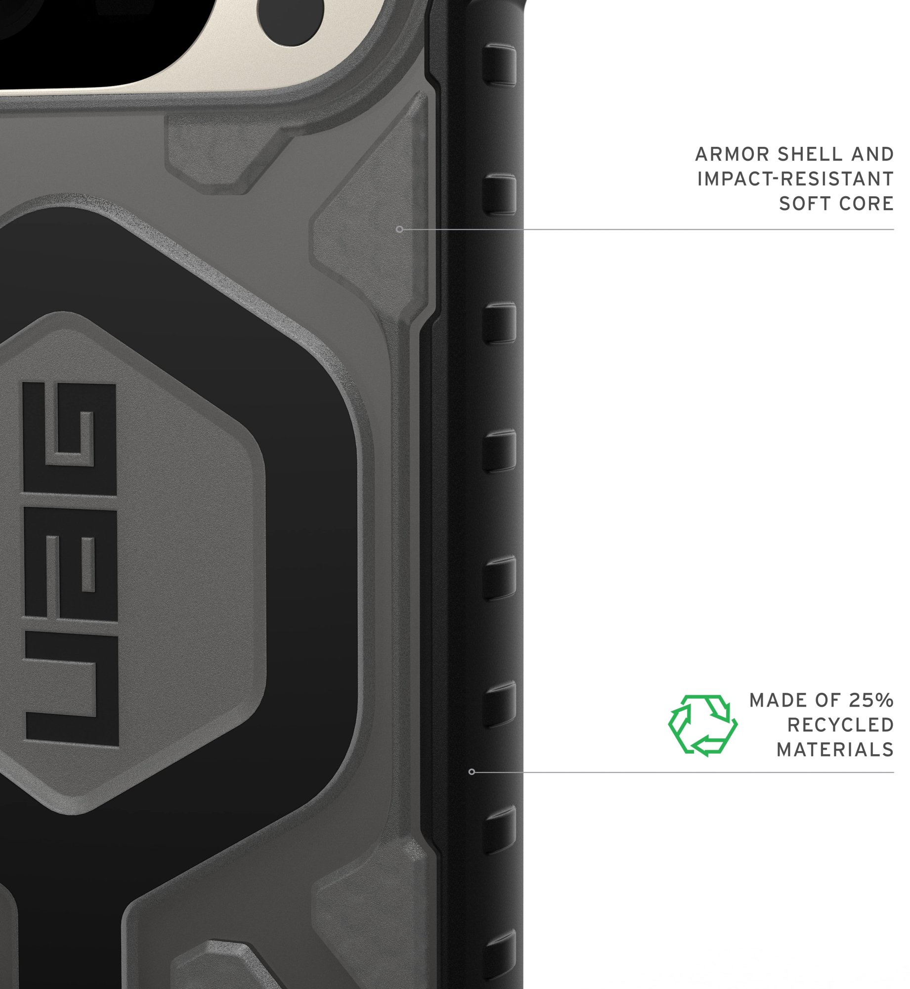 Виготовлений із 25% перероблених матеріалів, Pathfinder Clear поєднує екологічність із високою функціональністю. Легка конструкція не додає зайвого об’єму, але забезпечує надійний захист завдяки амортизуючим властивостям. Цей чохол ідеально підходить для тих, хто шукає баланс між естетикою, практичністю та довговічністю, зберігаючи при цьому повний доступ до всіх функцій телефону.