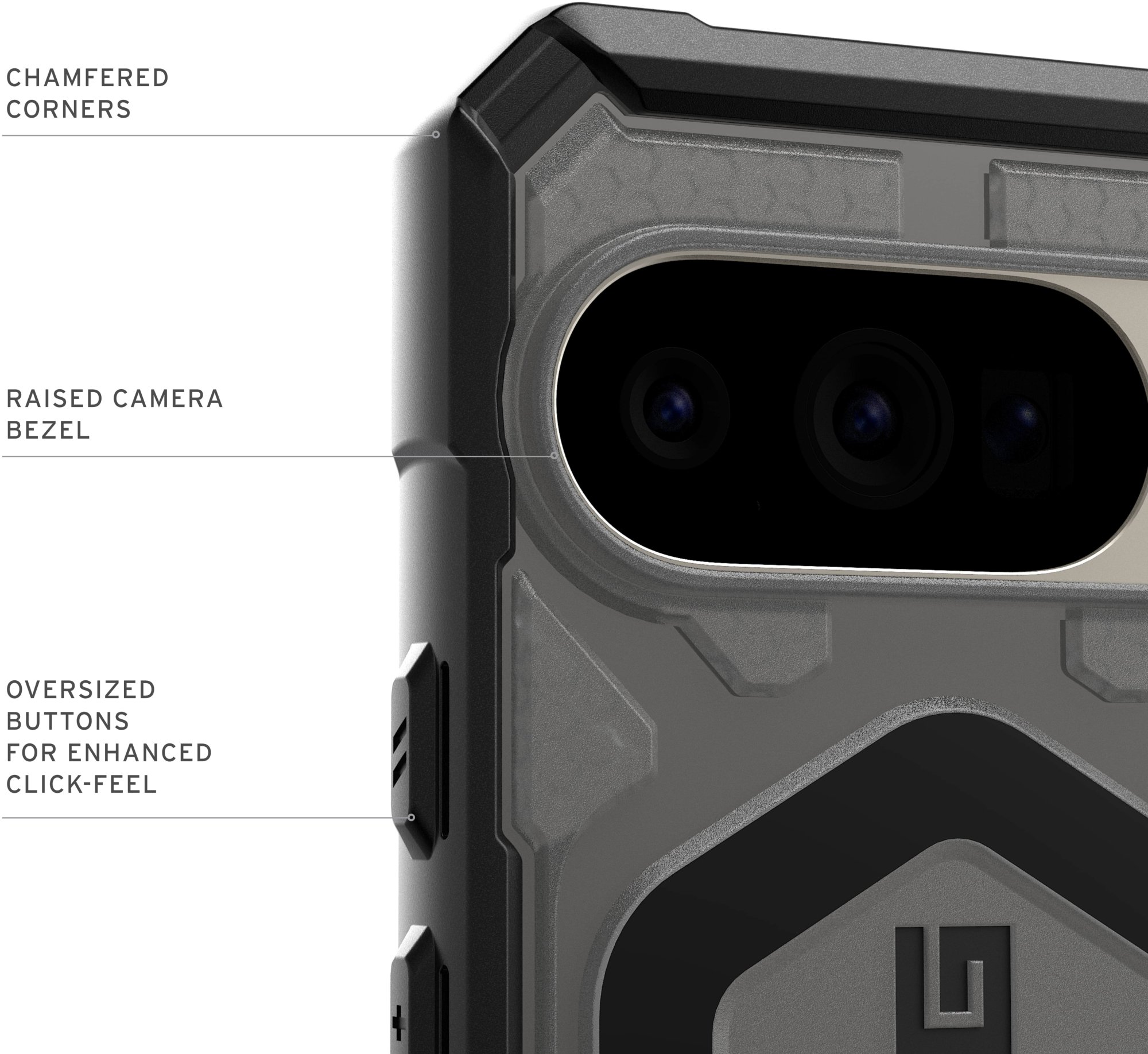 Особливістю чохла є вбудований магнітний модуль, який забезпечує ідеальне вирівнювання для бездротової зарядки Pixelsnap, Qi2, а також сумісність із магнітними аксесуарами та Google Pay. Чохол протестовано на міцність при падінні з висоти до 5,4 метра, що відповідає військовим стандартам (MIL-SPEC 810G-516.6), гарантуючи захист навіть у найекстремальніших умовах. Крім того, він оснащений точками кріплення для ремінця, що додає зручності та безпеки під час використання.