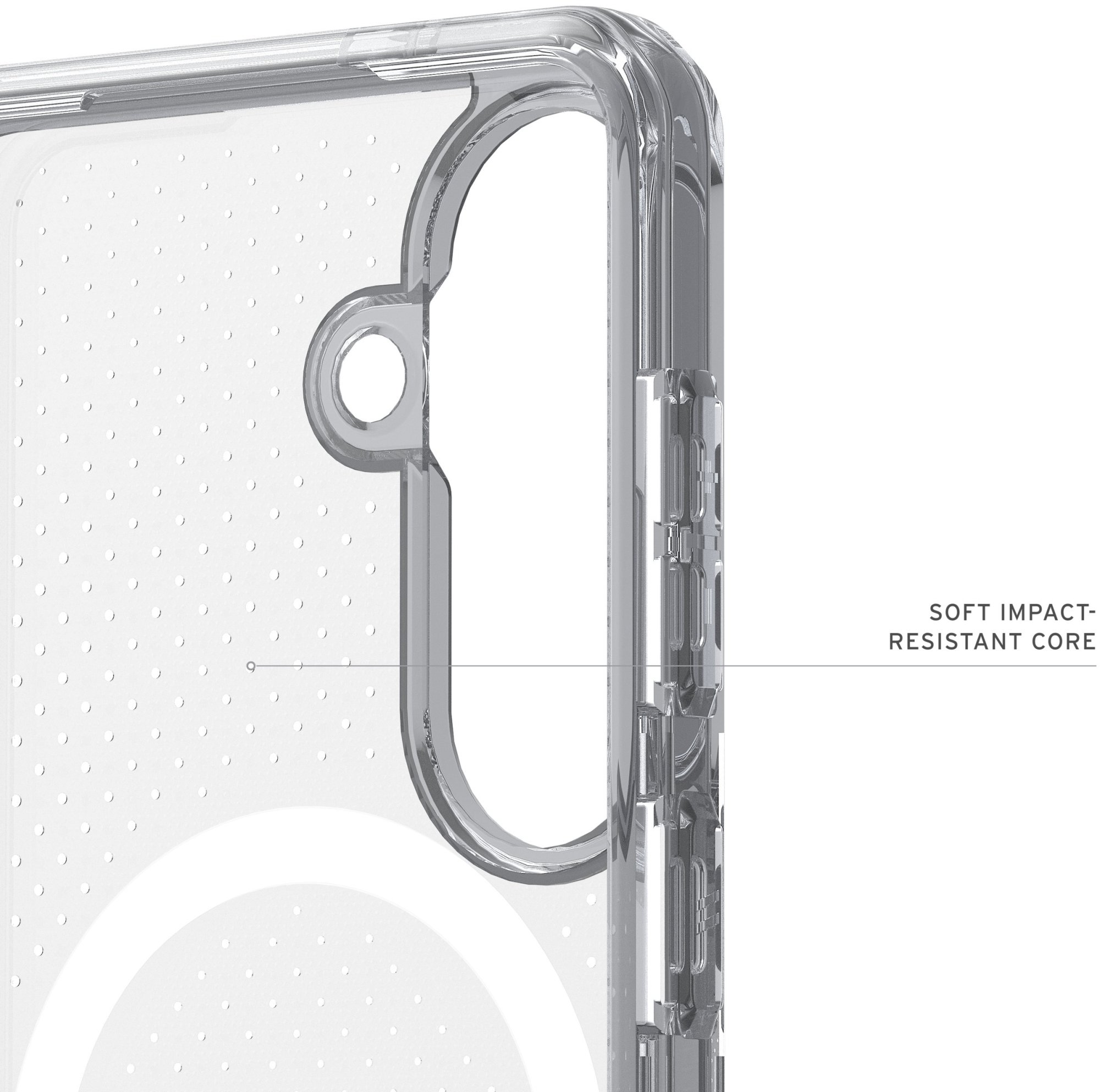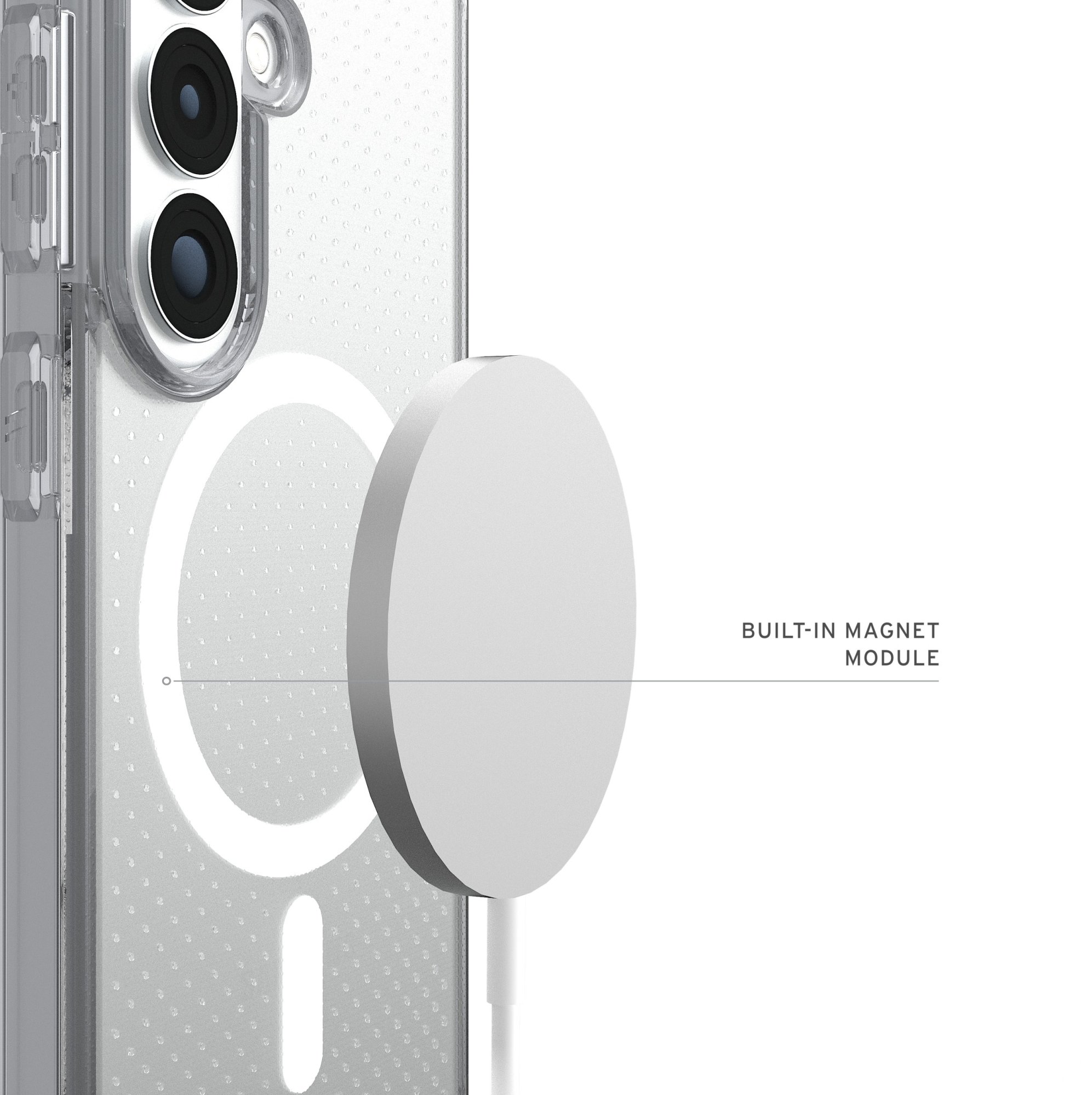 Чохол оснащений вбудованим магнітним модулем із підтримкою MagSafe, що забезпечує надійну фіксацію на бездротових зарядних пристроях і сумісність із магнітними аксесуарами, зберігаючи стабільність під час заряджання та використання. Полегшена конструкція робить аксесуар майже непомітним у руці, водночас гарантуючи високий рівень міцності, а текстурована протиковзка поверхня покращує хват і зменшує ймовірність випадкового вислизання смартфона.