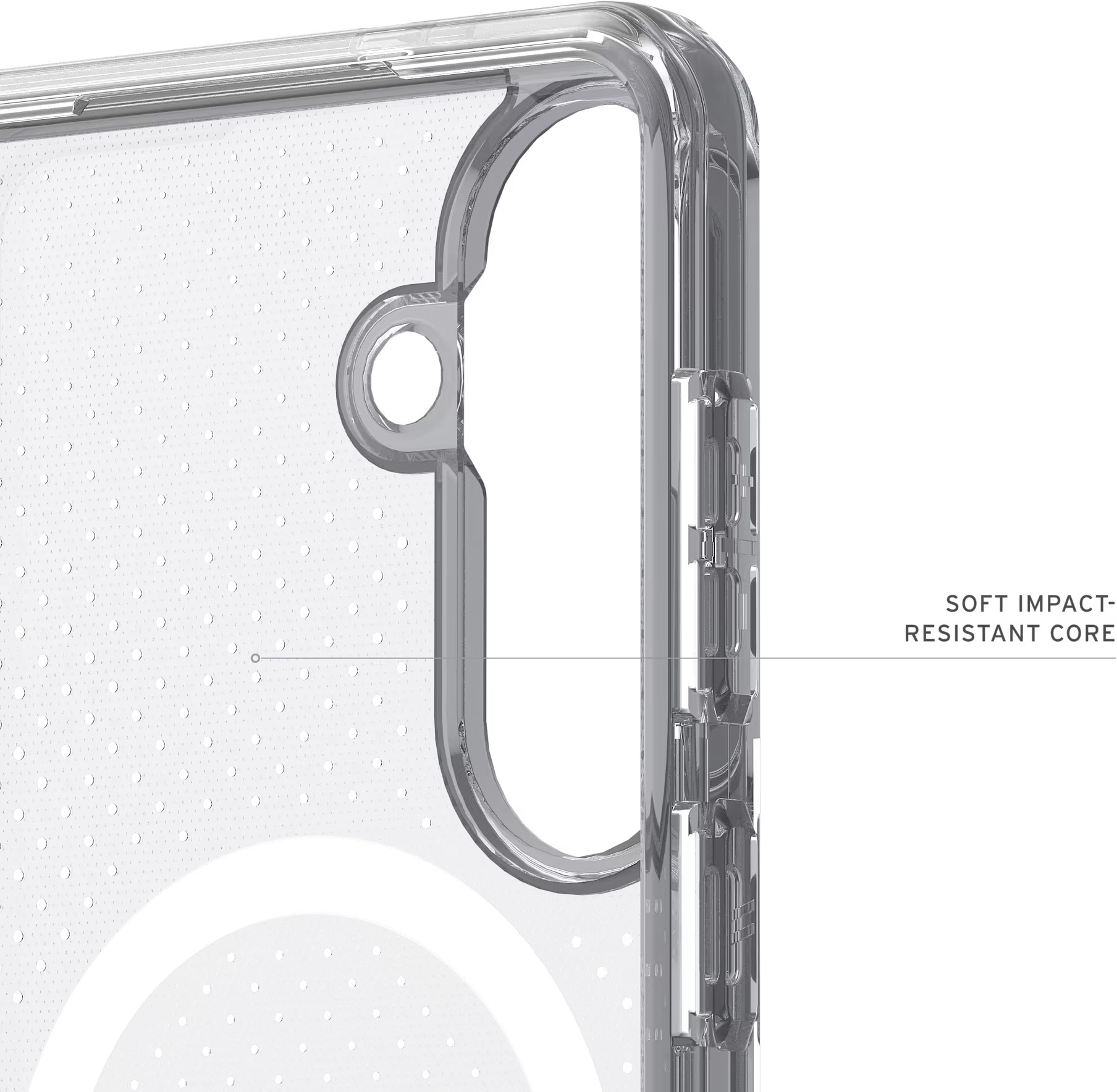 Чохол UAG Dot with Magnet для Samsung Galaxy S26 Plus поєднує легку конструкцію з надійним захистом військового рівня, забезпечуючи безпеку смартфона без втрати комфорту використання. Його міцна комбінована конструкція з полікарбонату та термопластичного поліуретану доповнена ударостійким м’яким сердечником, який ефективно поглинає удари та захищає пристрій від пошкоджень під час щоденного використання. Завдяки піднятому захисному бортику навколо екрана зменшується ризик появи подряпин і пошкоджень при контакті з твердими поверхнями.