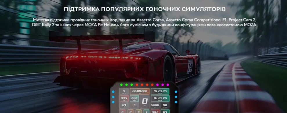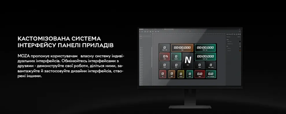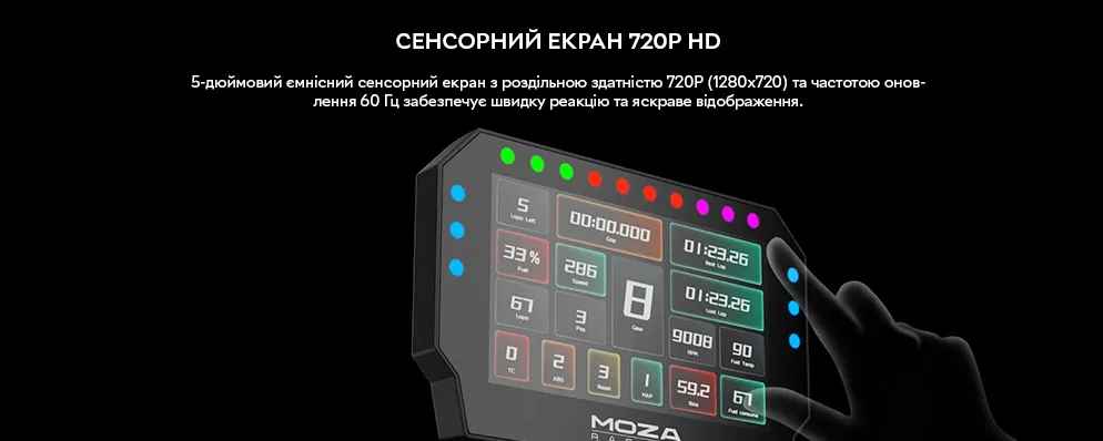 Однією з головних переваг є повністю кастомізований інтерфейс: через програмне забезпечення MOZA Pit House ви можете вибирати готові шаблони, створювати власні дашборди або завантажувати дизайни від спільноти. Це дозволяє ідеально адаптувати дисплей під ваші уподобання та тип перегонів.