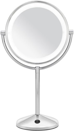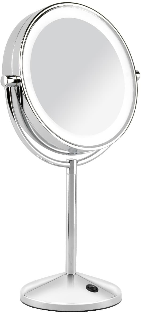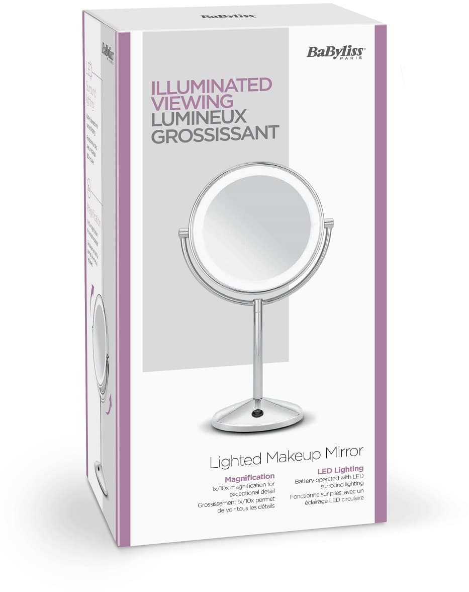 Двостороння конструкція робить Babyliss 9436E універсальним у використанні: з одного боку розташоване стандартне дзеркало для загального огляду, а з іншого — дзеркало з десятикратним збільшенням, яке ідеально підходить для роботи з дрібними деталями, такими як корекція брів, нанесення підводки чи догляд за шкірою навколо очей. Поворотна рамка дозволяє легко змінювати сторону дзеркала та налаштовувати оптимальний кут огляду.