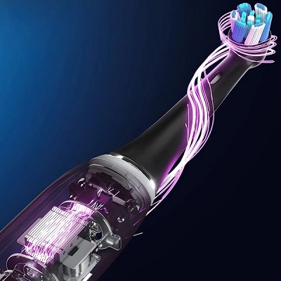 Інтерактивний дисплей на корпусі щітки супроводжує вас протягом усього процесу чищення: він відображає час, рівень натискання, стан заряду акумулятора та нагадує, коли настав час замінити насадку. Видимий датчик тиску миттєво сигналізує, якщо ви чистите зуби занадто сильно, допомагаючи зберегти здоров’я ясен.