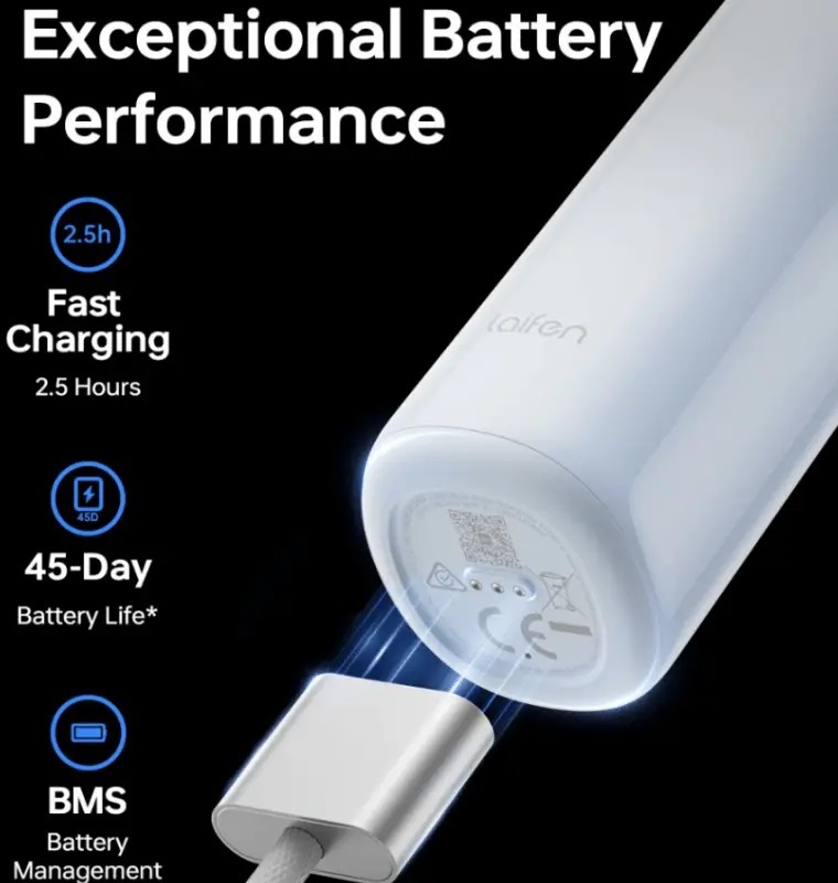 Laifen Wave отримала потужний двигун із продуктивністю 6,1 Вт, що майже втричі перевищує показники звичайних звукових щіток. Така потужність забезпечує швидше й глибше очищення без втрати делікатності. При цьому щітка залишається ніжною до ясен завдяки продуманому балансу та стабільній роботі механізмів.