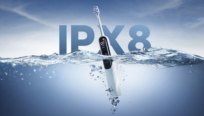 Зубна щітка має водонепроникність стандарту IPX8, що дозволяє безпечно використовувати її у вологому середовищі. Продумана дугоподібна форма корпусу запобігає накопиченню води та забруднень, зберігаючи гігієнічність і стабільну роботу. Вбудований акумулятор забезпечує до 120 днів автономної роботи, а режим Smart Travel Lock запобігає випадковому увімкненню під час подорожей.