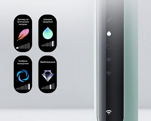 Щітка також пропонує налаштовувані дисплеї пробудження, які можна персоналізувати, завантажуючи улюблені фотографії через мобільний застосунок — селфі, фото рідних чи домашніх улюбленців. Такий підхід додає індивідуальності й приємних емоцій у щоденну процедуру чищення зубів.