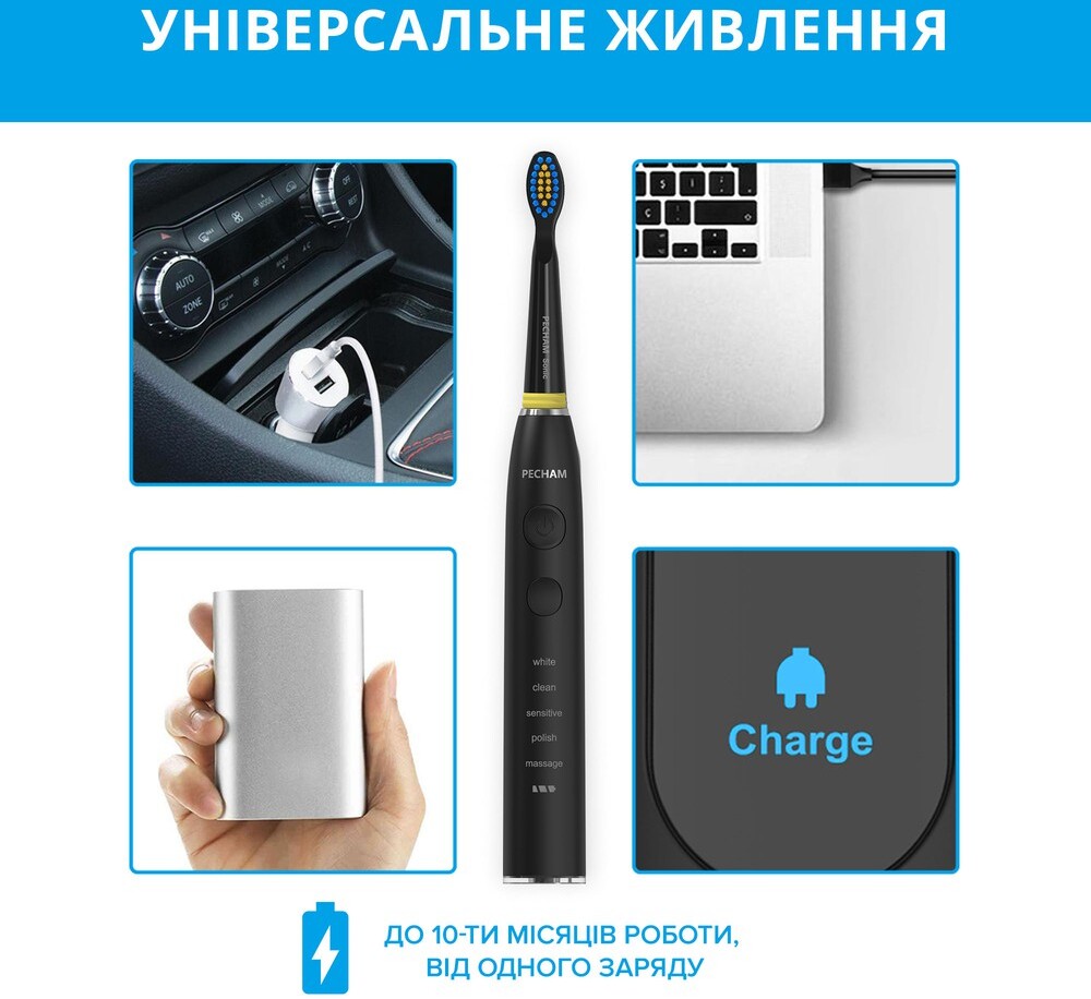 Особливою перевагою моделі є потужний акумулятор 1500 мАг, якого вистачає приблизно на 10 місяців роботи при чищенні двічі на день. Повна зарядка займає 6–8 годин, після чого пристрій знову готовий до тривалої експлуатації.