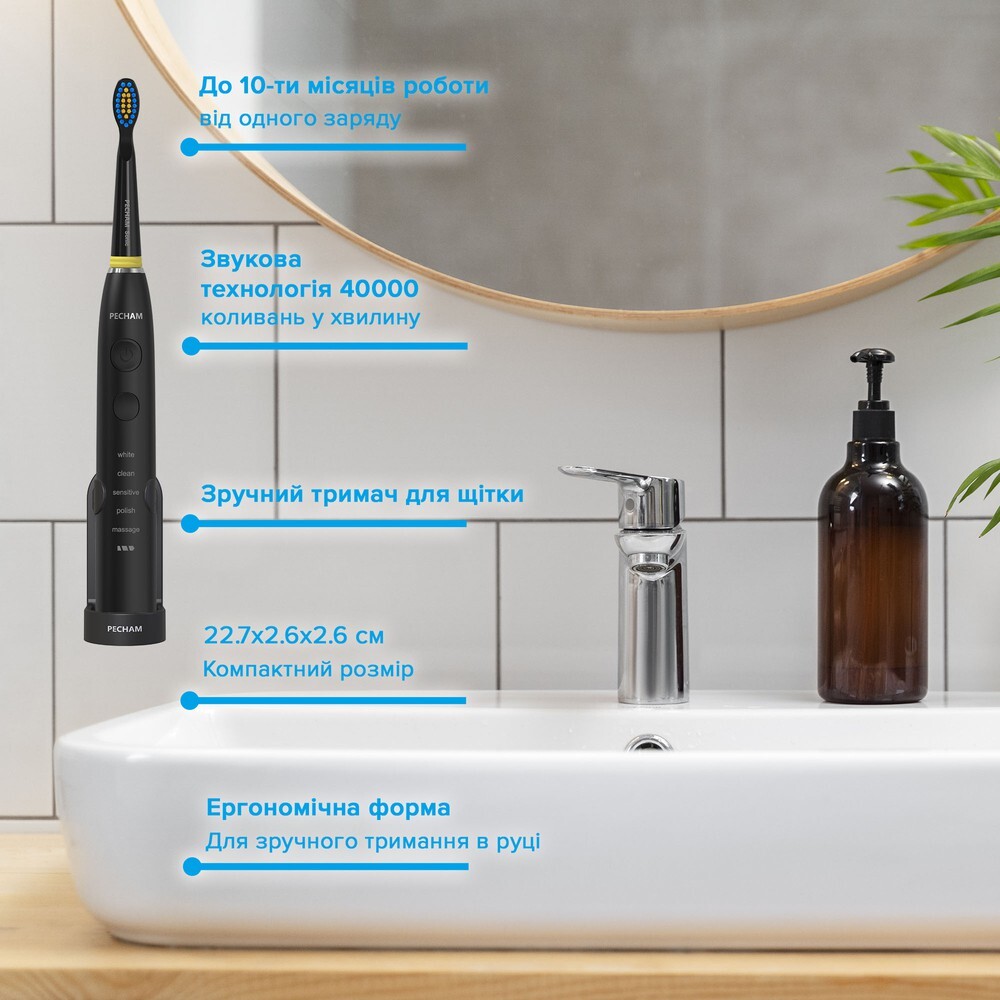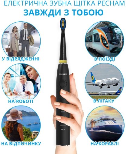 Електрична зубна щітка PECHAM Black Travel PC-085 — це зручний та практичний вибір для щоденного догляду за зубами вдома й у поїздках. Завдяки легкій конструкції та компактним насадкам вона не обтяжує під час перенесення, а вбудований акумулятор дозволяє взяти щітку із собою будь-куди без потреби у частому заряджанні. Ручка обладнана антиковзною накладкою, що забезпечує надійне утримання, навіть якщо руки мокрі, а герметичний корпус захищає електроніку від вологи, роблячи пристрій безпечним у використанні у ванній кімнаті.