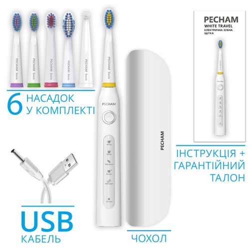 Електрична зубна щітка PECHAM White Travel PC-081 — це зручний дорожній аксесуар, створений для комфортного та ефективного догляду за зубами під час щоденного використання та подорожей. Завдяки малій вазі всього 71 г разом із насадкою щітка легко лежить у руці та не обтяжує багаж, а герметичний корпус захищає електроніку від води. Для впевненого хвату на ручці передбачено антиковзне покриття, що робить очищення стабільним і точним.