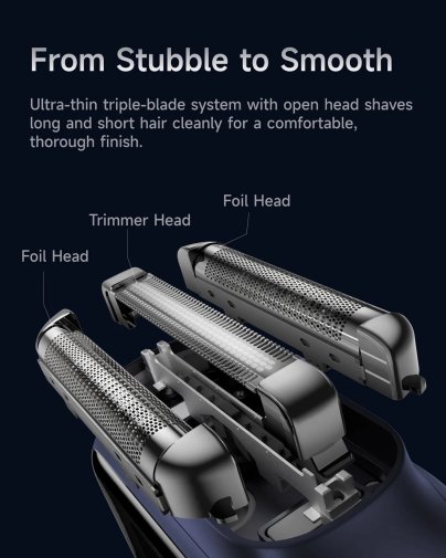 Трипластинкова фольгова система з ультратонкою фольгою 0,055 мм та прецизійними лезами з нержавіючої сталі забезпечує чистий зріз без порізів і подразнень. Відкрита конструкція голівки однаково ефективно справляється як із короткою щетиною, так і з довшим волоссям, забезпечуючи акуратний перехід від легкого стубла до ідеально гладкого фінішу. Запатентований ArcBlade-дизайн із кутом до 146,2° точно повторює контури обличчя, гарантуючи стабільний контакт зі шкірою та рівномірний результат без пропусків.