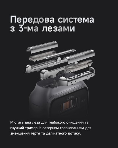 Laifen P3 Pro — це інноваційна електробритва преміумкласу, створена для максимально чистого, швидкого та комфортного гоління. В її основі — високошвидкісний лінійний двигун L2 власної розробки, який розганяється до 6000 обертів на хвилину та забезпечує стабільну потужність незалежно від густоти щетини. Інтелектуальна система Smart Shave з вбудованим мікропроцесором у реальному часі аналізує стан бороди, автоматично регулюючи силу гоління для ідеального результату без подразнень.