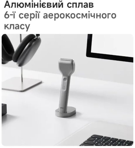 Корпус з алюмінієвого сплаву 6-ї серії аерокосмічного класу забезпечує високу міцність і преміальні тактильні відчуття. Водонепроникна конструкція дозволяє легко очищати бритву та використовувати її в різних умовах.