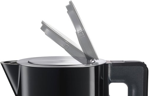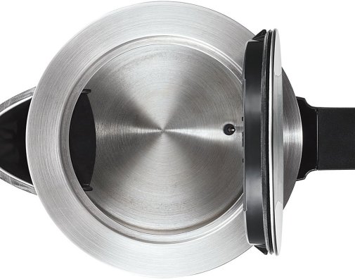 Продумана система безпеки включає автоматичне вимкнення після закипання, захист від перегрівання та увімкнення без води, вимкнення при знятті з бази, а також відключення при відкриванні кришки. Кришка відкривається натисканням кнопки та має великий кут відкриття для зручного очищення.