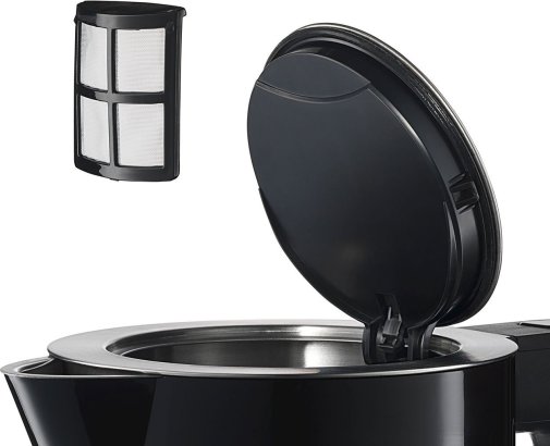 Двошарова конструкція з нержавіючої сталі сприяє кращій теплоізоляції та безпечнішому дотику до корпусу. Нагрівальний елемент прихований під пластиною з нержавіючої сталі, що полегшує очищення і підвищує довговічність приладу. Знімний фільтр від накипу запобігає потраплянню осаду в напій і легко очищується.