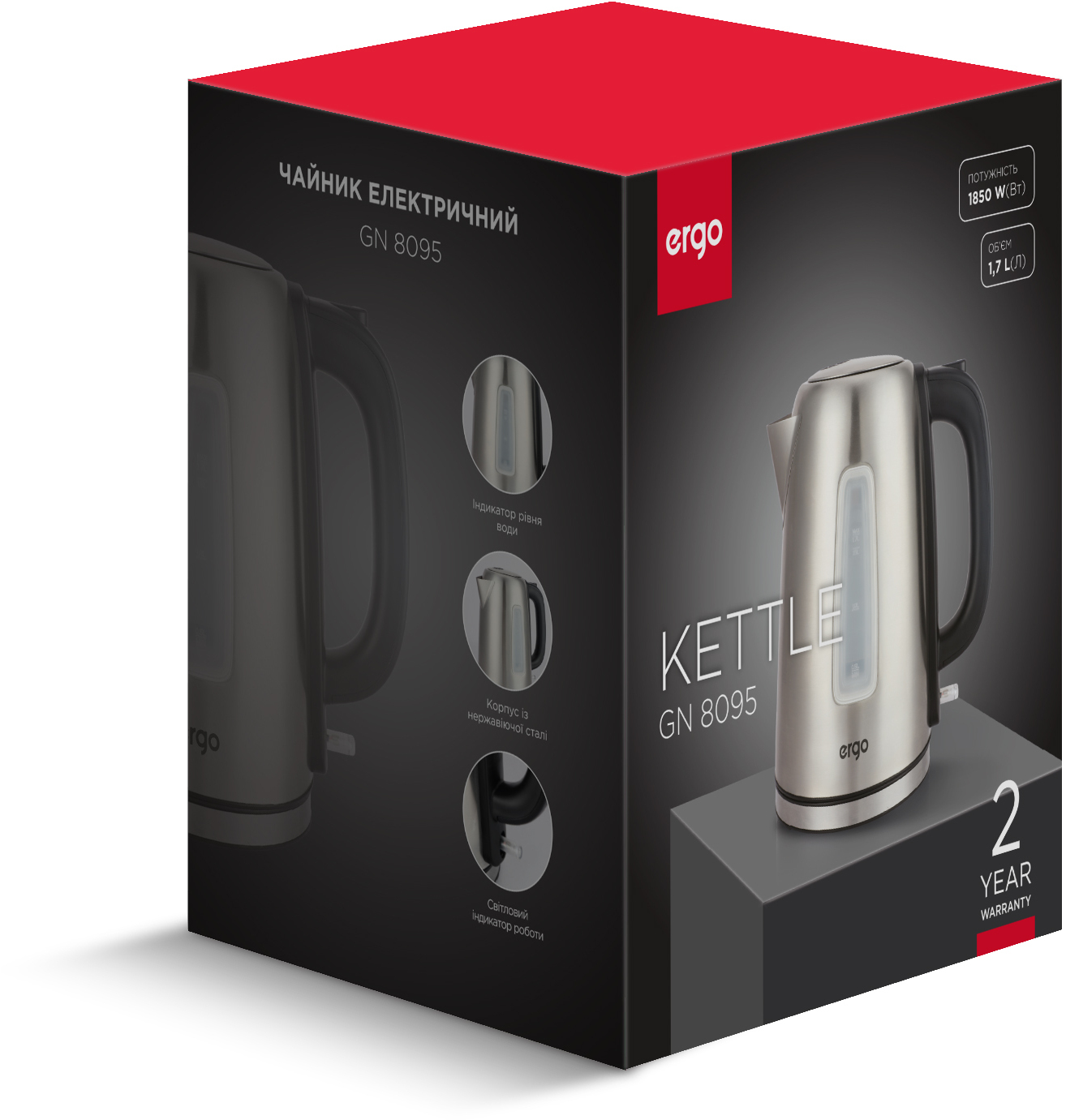 ERGO GN 8095 поєднує у собі надійність, зручність та високу ефективність, роблячи його ідеальним рішенням для щоденного використання в будь-якій сучасній кухні. Його класичний металевий корпус, продумана ергономіка та потужний нагрівальний елемент забезпечують комфорт, безпеку та швидкість приготування гарячих напоїв.