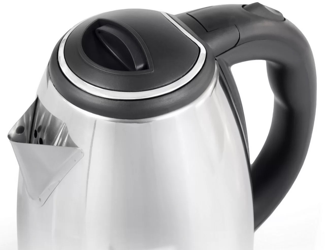 Електрочайник потужністю 1500 Вт об’ємом 1,8 л. Корпус виконаний з металу та пластику. Оснащений прихованим нагрівальним елементом, автоматичним вимкненням при закипанні та захистом від перегріву. Колір – нержавіюча сталь із чорним.