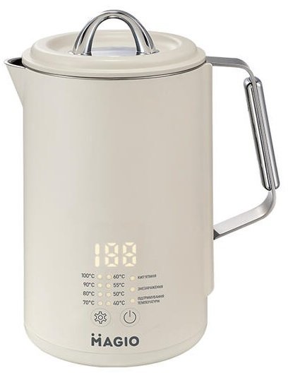 Електрочайник з подвійними стінками та регулюванням температури Magio 1.5 л. Для максимальної безпеки чайник оснащений автоматичним вимкненням при закипанні та захистом від перегріву.