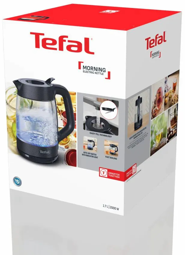 Tefal Morning Glass Kettle KO2G08E0 — це стильний скляний електрочайник від французького бренду Tefal серії Morning, який поєднує естетику та надійну функціональність для щоденного використання. Якщо ви шукаєте найкращий електрочайник зі скляним корпусом для дому, Morning Glass — один із найбільш впізнаваних варіантів у своєму класі завдяки прозорому корпусу з підсвічуванням, яке робить процес кипіння видовищним і додає акцент будь-якій кухні.
