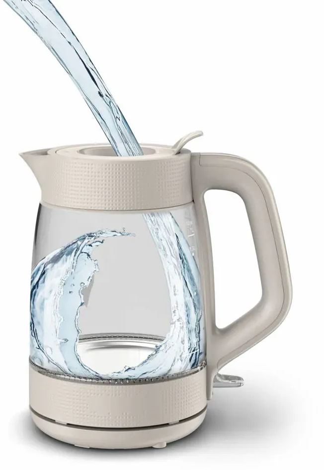 Потужність 2000 Вт дозволяє закип'ятити повний об'єм води надзвичайно швидко — ідеально для зайнятих ранків, коли час на рахунку. Місткість чайника — 1,7 літра, що вистачає для всієї родини або кількох чашок чаю чи кави за один цикл. Корпус виготовлений із жаростійкого скла — матеріалу, що не вбирає запахи та смаки і легко очищається. Прозорі стінки дозволяють в реальному часі бачити рівень води та процес кипіння, а підсвічування під час нагріву перетворює звичний ранковий ритуал на приємну деталь кухонного інтер'єру.