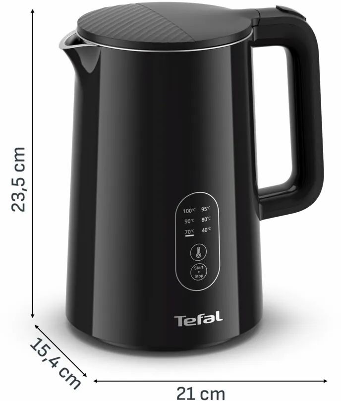 Електрочайник Tefal Thermo Protect Control KO6518E0 — це преміальне рішення для приготування гарячих напоїв із повним контролем температури та безпекою використання. Завдяки шести температурним режимам (40° / 70° / 80° / 90° / 95° / 100°C) ви можете точно налаштувати нагрів води під різні види чаю або кави, забезпечуючи ідеальний смак напою.