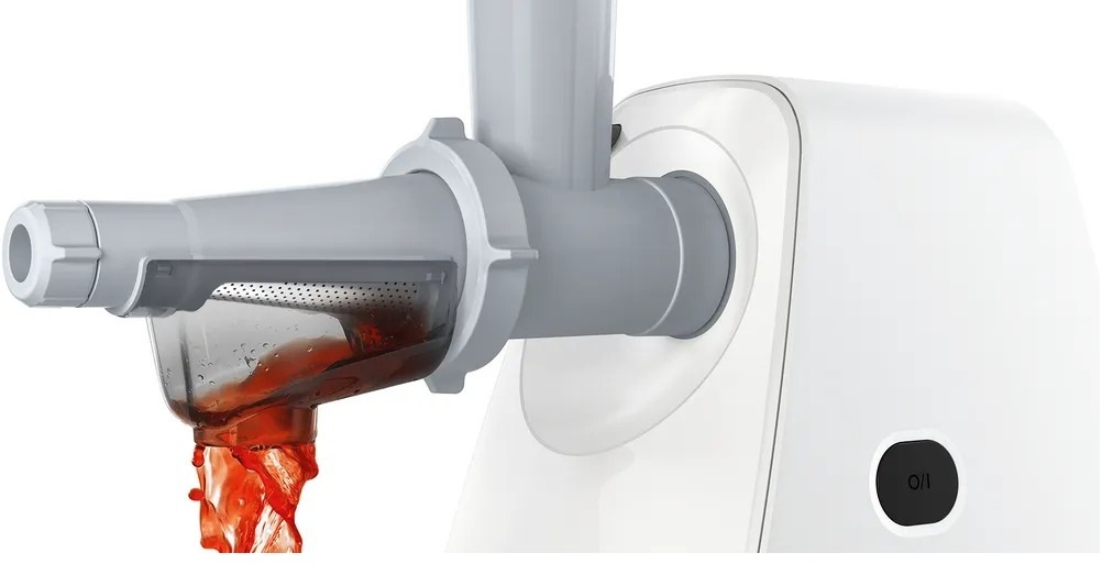 Пристрій також оснащений насадкою для соковижималки, яка дозволяє отримати свіжий сік з фруктів, ягід та овочів, включно з помідорами, видаляючи навіть плодоніжки у смородини. Особливий дизайн і гумові ніжки забезпечують стійкість м’ясорубки під час роботи, запобігаючи ковзанню та роблячи процес максимально безпечним.