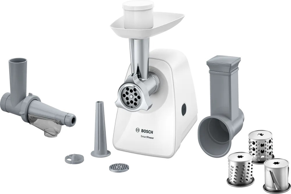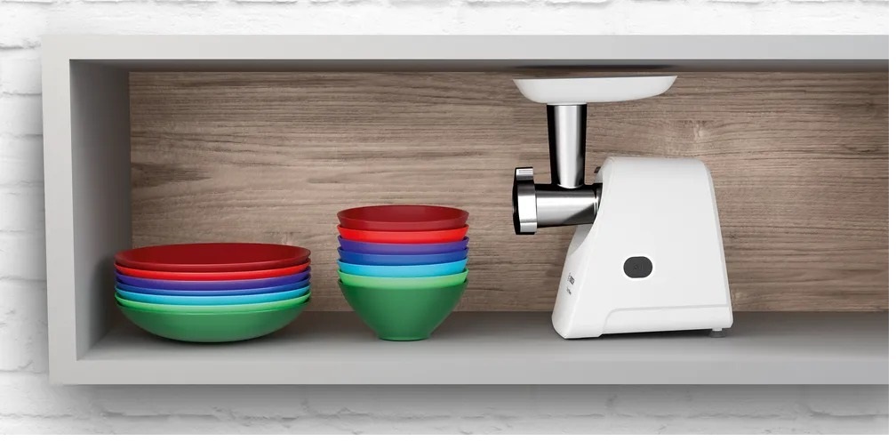 Для рівномірного та безпечного подрібнення м’яса передбачені диски з нержавіючої сталі, які легко чистити та можна обирати серед трьох різних варіантів, щоб отримати бажану консистенцію фаршу. Насадка для ковбасок дозволяє готувати домашні курячі, свинні, яловичі або навіть вегетаріанські ковбаски швидко та просто.