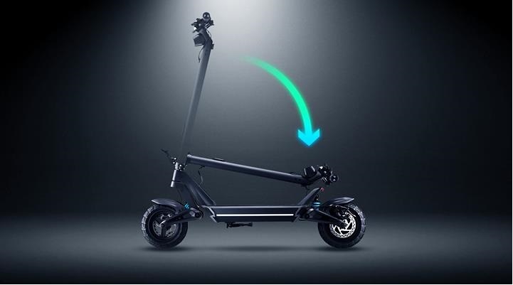 Рама виготовлена з міцного матеріалу, що витримує інтенсивне навантаження, а складна конструкція дозволяє зручно транспортувати або зберігати самокат у невеликому просторі. Додатково передбачено підтримку мобільного застосунку, який розширює функціональність пристрою, дозволяючи відстежувати параметри поїздок та налаштовувати режими роботи.