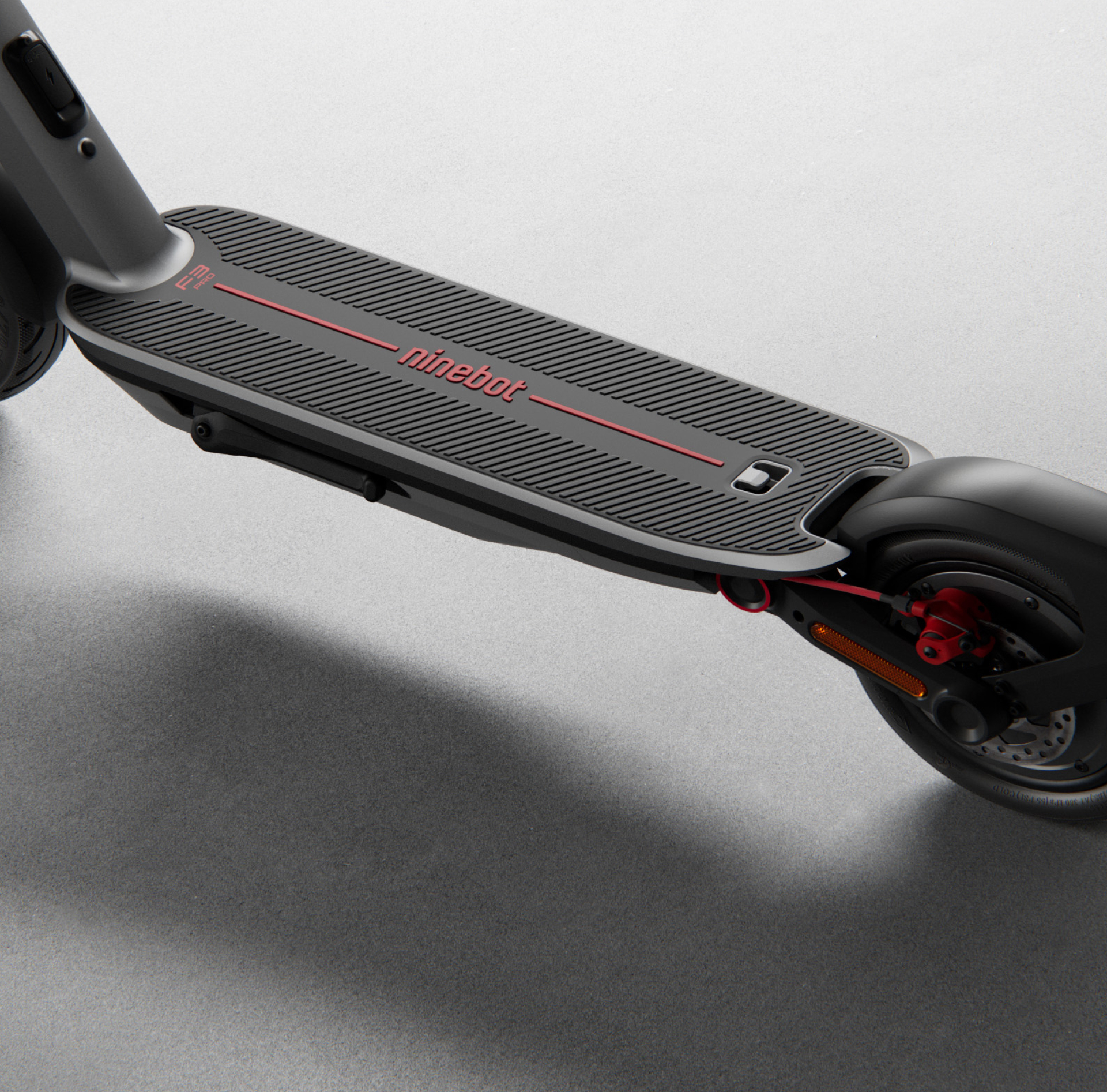 За безпеку відповідають передні та задні дискові гальма, система стабілізації SegRide, контроль тяги TCS для впевненого зчеплення на слизьких поверхнях і яскраве освітлення з автоматичною фарою, денними ходовими вогнями, стоп-сигналами та вбудованими покажчиками поворотів. Підвищений рівень водонепроникності IPX6 для корпусу та IPX7 для акумулятора дозволяє без побоювань користуватися самокатом у дощову погоду, а продумана точка для замка робить щоденне паркування зручнішим і безпечнішим