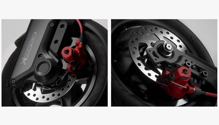 За впевнену їзду відповідають 10-дюймові безкамерні самоущільнювальні шини, які підвищують стійкість і автоматично закривають дрібні проколи, зменшуючи потребу в обслуговуванні. Велика підніжка розміром 180 × 510 мм дає достатньо простору для ніг, а міцна конструкція з магнієвого сплаву додає жорсткості та відчуття контролю під час руху.