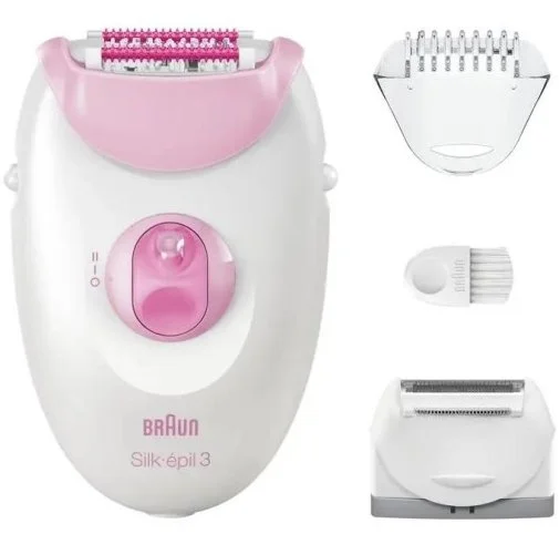 Рожевий жіночий епілятор Braun Silk-épil 3 SE 3-031 — ідеальний засіб для делікатного усунення небажаних волосків. Його повністю ергономічна форма забезпечує комфортну епіляцію, тримаючи шкіру м'якою протягом 3-4 тижнів.