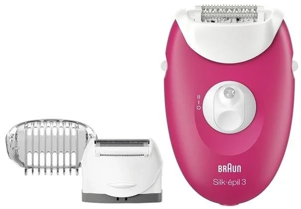 Braun Silk epil 3 SE 3-410 - епілятор від надійного виробника малинового кольору з 3 додатковими насадками, покликаний забезпечити ідеальну гладкість вашим ніжкам.