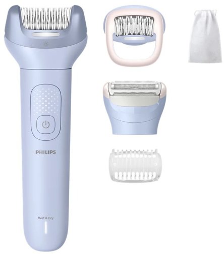 Для чутливих зон у комплекті передбачено 4 насадки, зокрема додаткову бритвену головку та гребінець-тример, які забезпечують делікатне гоління без порізів і подразнень. Це робить епілятор універсальним рішенням для комплексного догляду за тілом.