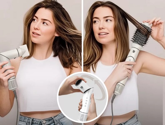 Фен-стайлер AENO HS1 — це потужний, інноваційний інструмент для догляду за волоссям, що поєднує в собі функціональність професійного фена та стайлера. Завдяки унікальному поворотному механізму, пристрій за лічені секунди перетворюється з фена на стайлер, дозволяючи легко перемикатися між режимами сушіння та укладання. Така трансформація робить його ідеальним рішенням для тих, хто прагне економити час та простір, не жертвуючи якістю результату.