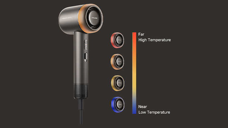 Інноваційна технологія штучного інтелекту (AI) автоматично підбирає оптимальну температуру залежно від відстані до голови: м’яке тепло поблизу шкіри забезпечує комфорт, а інтенсивніше — швидке висушування по довжині волосся. За це відповідають датчики наближення TOF, які постійно аналізують умови у реальному часі.