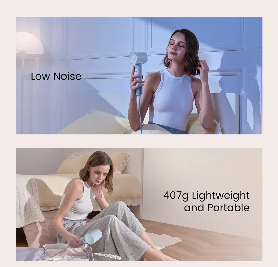 Комфорт під час роботи забезпечує передова система зниження шуму. Акустична оптимізація, продумана конструкція повітряного каналу, безщітковий мотор і точне припасування компонентів значно зменшують рівень шуму, роблячи фен тихішим і приємнішим у щоденному використанні.