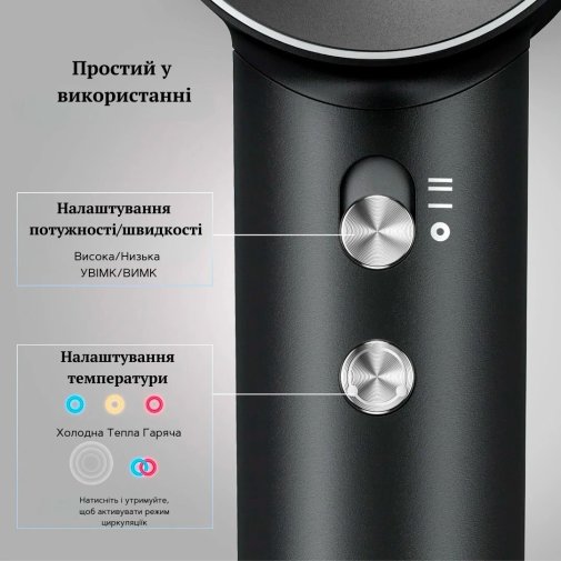 Догляд за волоссям доповнює технологія іонізації з генерацією до 200 мільйонів негативних іонів на см³. Вона зменшує статичну електрику, бореться з пухнастістю й сухістю, повертає волоссю гладкість і природний блиск, одночасно захищаючи його від пилу та забруднень.