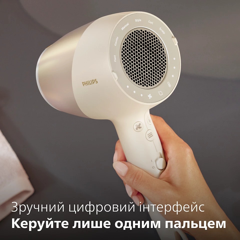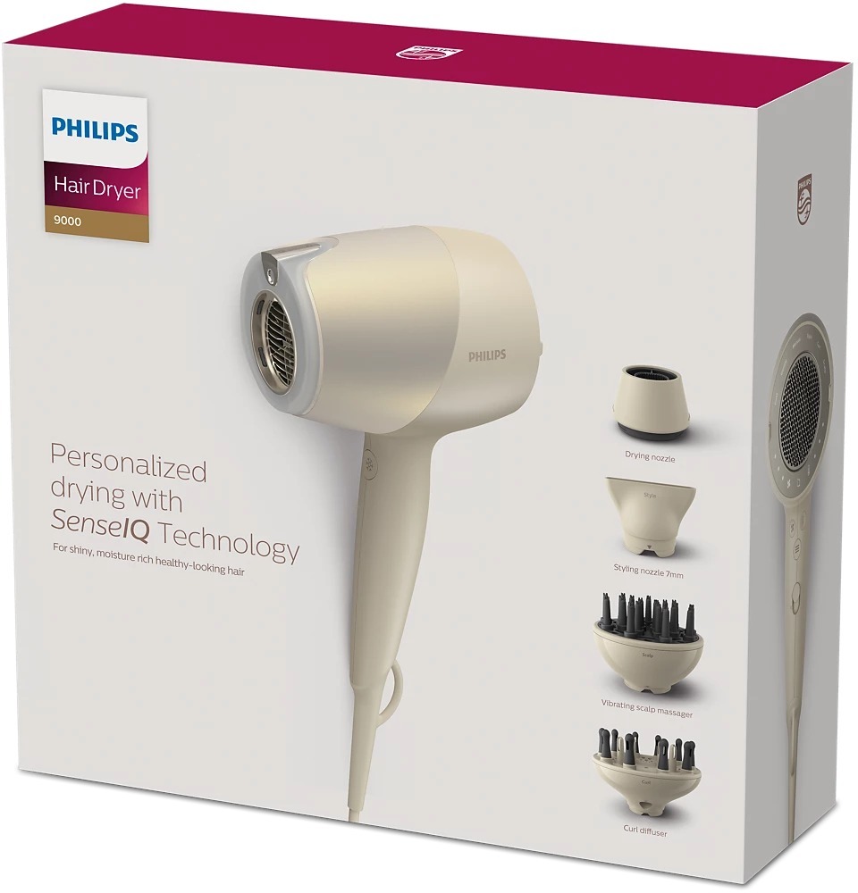 Фен Philips SenseIQ 9000 Series — це не просто інструмент для сушіння, а персональний асистент краси, який аналізує, адаптує та доглядає за вашим волоссям, зберігаючи його природну силу та блиск щодня.