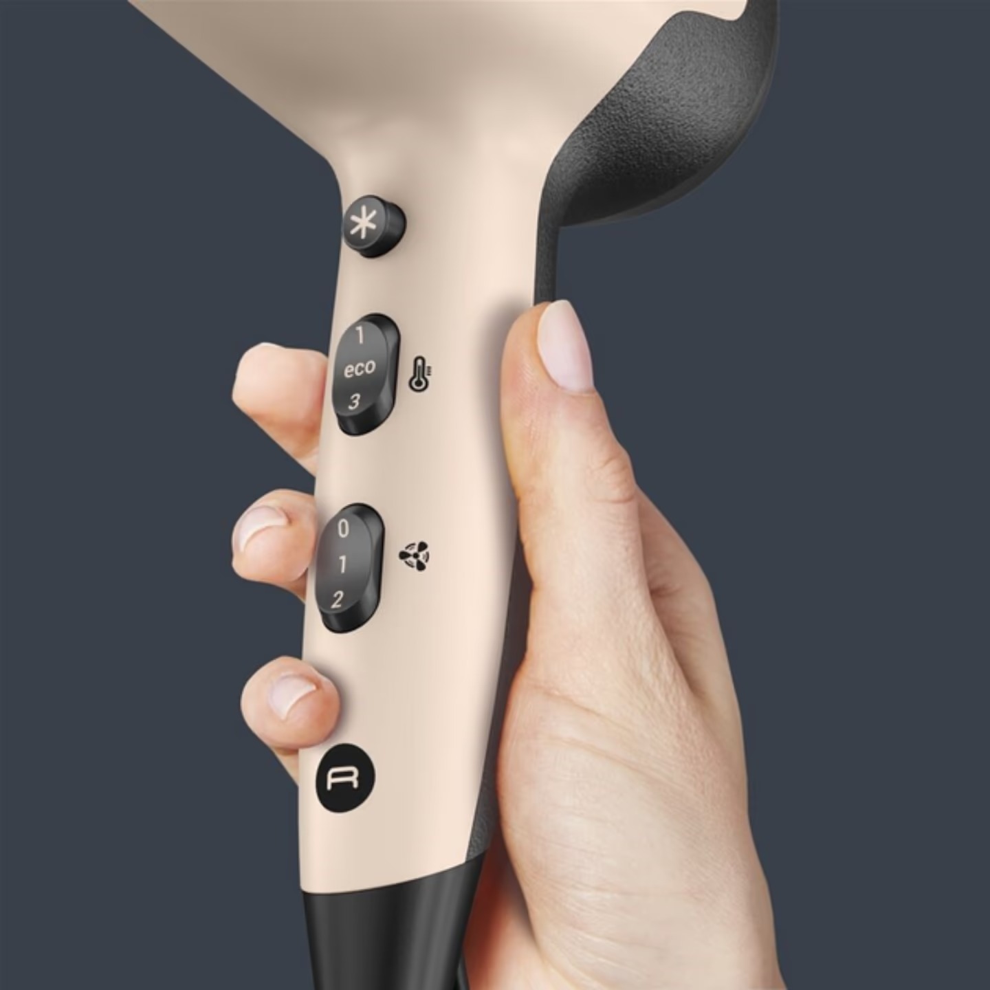 Rowenta Renew створений щонайменше на 30% із перероблених матеріалів, включно з 60% переробленого пластику, що робить його відповідальним вибором для краси та планети. Інноваційний мотор із технологією EffiTech забезпечує ефективність сушіння, еквівалентну 2400 Вт, при фактичному споживанні лише 2100 Вт, а режим Eco дозволяє економити до 55% енергії без втрати потужності.