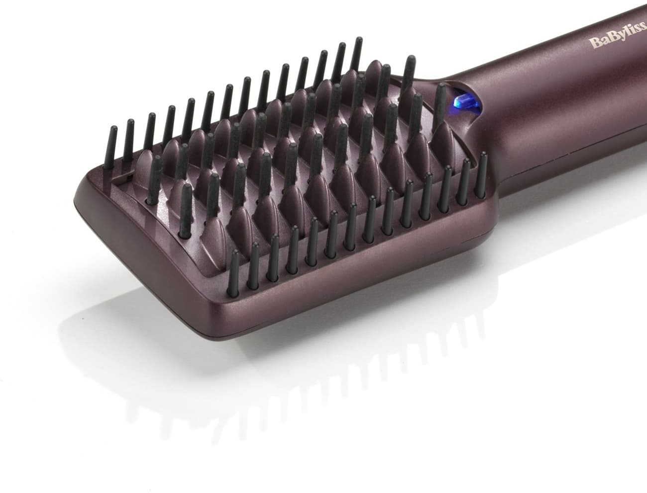 Термощітка із керамічною пластиною та комбінованими гребінцями забезпечує точне розташування силіконових щетинок для ідеального розчісування та стайлінгу на будь-якому типі волосся. Це дозволяє легко та швидко вирівняти пасма навіть після миття, залишаючи їх шовковистими та сяючими.