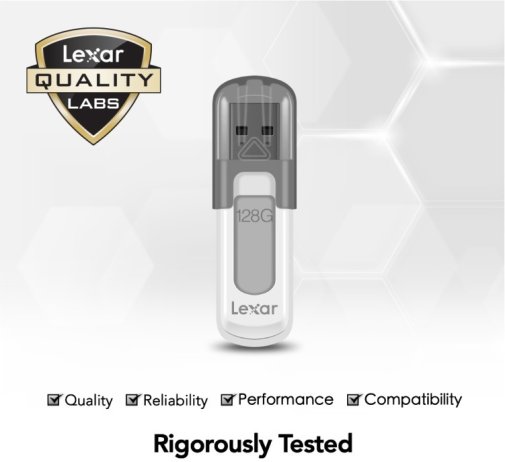 Флеш-накопичувач Lexar JumpDrive V100 — це компактний USB-флеш-драйв об'ємом 128 ГБ у сірому кольорі, призначений для швидкого зберігання та передачі файлів, таких як фото, відео, музика чи документи, у повсякденному використанні на комп'ютерах, ноутбуках чи інших пристроях. Ця модель використовує інтерфейс USB 3.2 Gen 1, що забезпечує високу швидкість читання та запису для збереження великих файлів без довгого очікування.