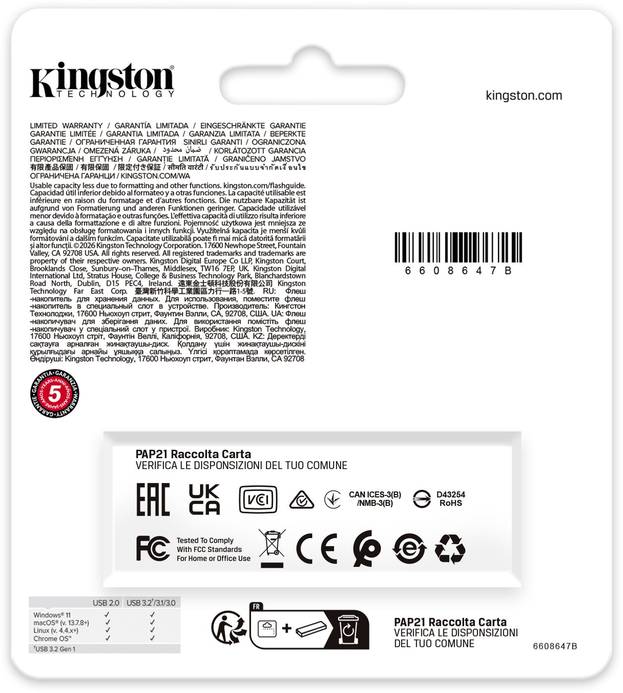 Kingston DataTraveler Exodia G2 поєднує надійність, простоту та зручність, стаючи цінним інструментом для тих, хто цінує швидкість передачі даних і мобільність. Легкий, стильний і практичний — він ідеально підходить для повсякденних завдань, де потрібен надійний спосіб зберігання та перенесення інформації.