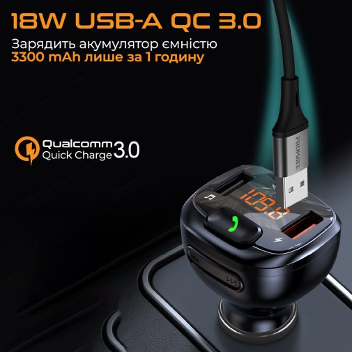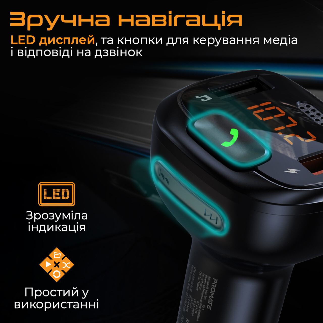 Promate SmarTune-4 — це багатофункціональний автомобільний пристрій, який поєднує FM-трансмітер і потужну автомобільну зарядку. Він легко підключається до гнізда прикурювача в авто з напругою 12-24 В і відразу готовий до роботи, забезпечуючи кришталево чисте звучання музики через динаміки автомобіля в діапазоні частот 87.5-108.0 MHz.