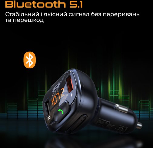 Завдяки Bluetooth 5.1 з'єднання стабільне та без переривань, дозволяючи стрімити музику з телефону, а вбудований мікрофон робить можливими hands-free дзвінки: відповідайте одним натисканням кнопки, і розмова виводиться на автомобільні колонки для безпеки та зручності.