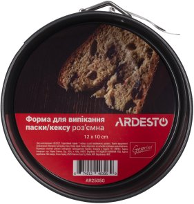 Випікати смачні кекси зручно в роз’ємній формі ARDESTO Gemini. Кондитерський аксесуар вироблено з вуглецевої сталі, розмір – 12 × 10 см, товщина стінок становить 0,5 мм. На бічній поверхні вбудовано руків’я для розсування стінок. Допустима максимальна температура нагрівання – 220 °С. Є певне обмеження щодо догляду: аби форма слугувала упродовж тривалого часу й передчасно не зношувалася, її не рекомендовано мити в посудомийній машині.