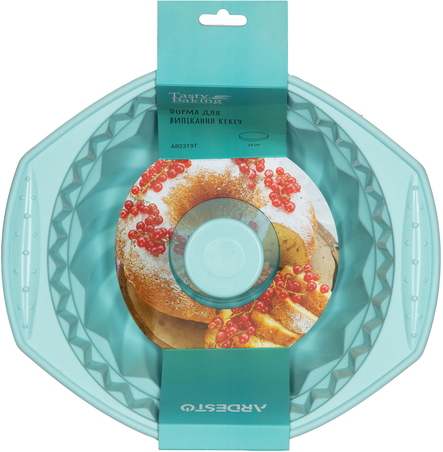Силіконова форма для випікання кексів, розміром 27,5 × 24 × 10,5 см. Термостійка – витримує температуру до 200 °C. Мити в посудомийній машині не можна.