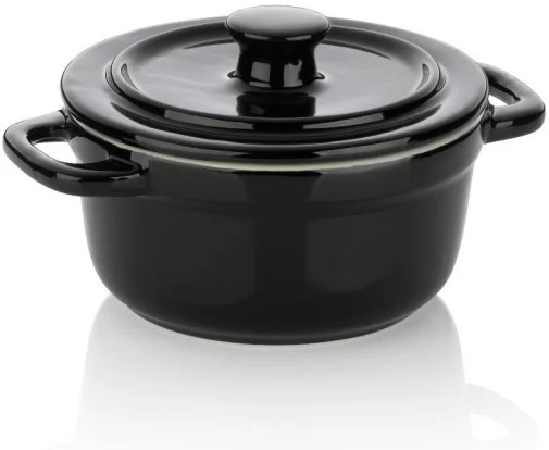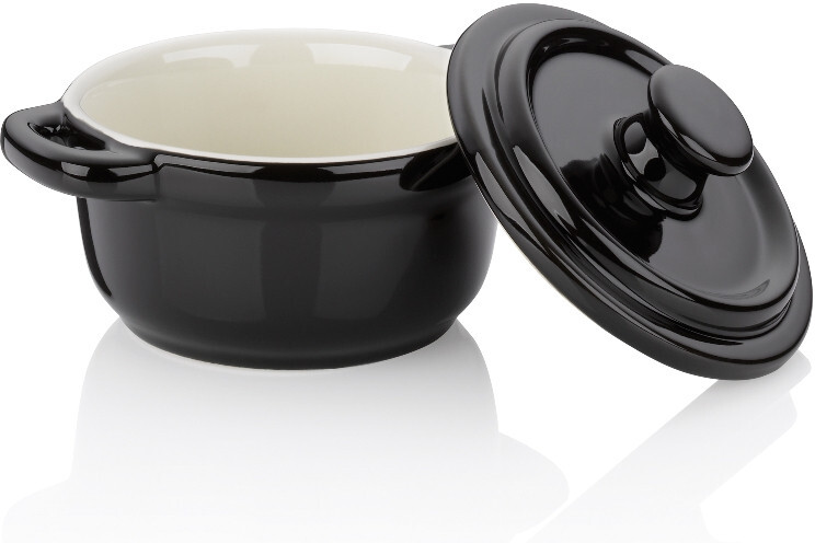 За допомогою круглої керамічної ємності для запікання KELA Malin з кришкою та ручками можна приготувати смачні запечені або тушковані страви в духовці при температурі до 280°C. Форма для запікання Malin виготовлена з міцної кераміки та покрита глазур'ю, у поєднанні чорного та бежевого кольорів. Діаметр форми – 14 см., висота (з кришкою) – 9 см.