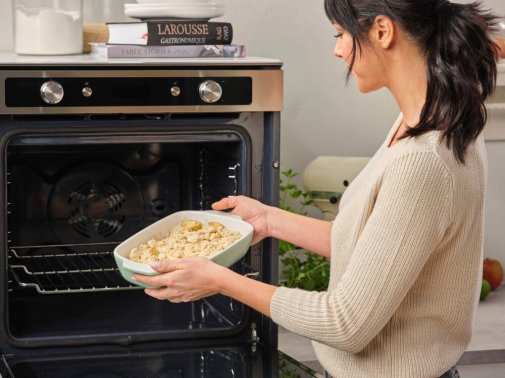 Після виймання з духовки керамічний посуд для випікання утримує тепло довше, ніж звичайний посуд для випікання. Можна мити у верхньому та нижньому відсіку посудомийної машини.