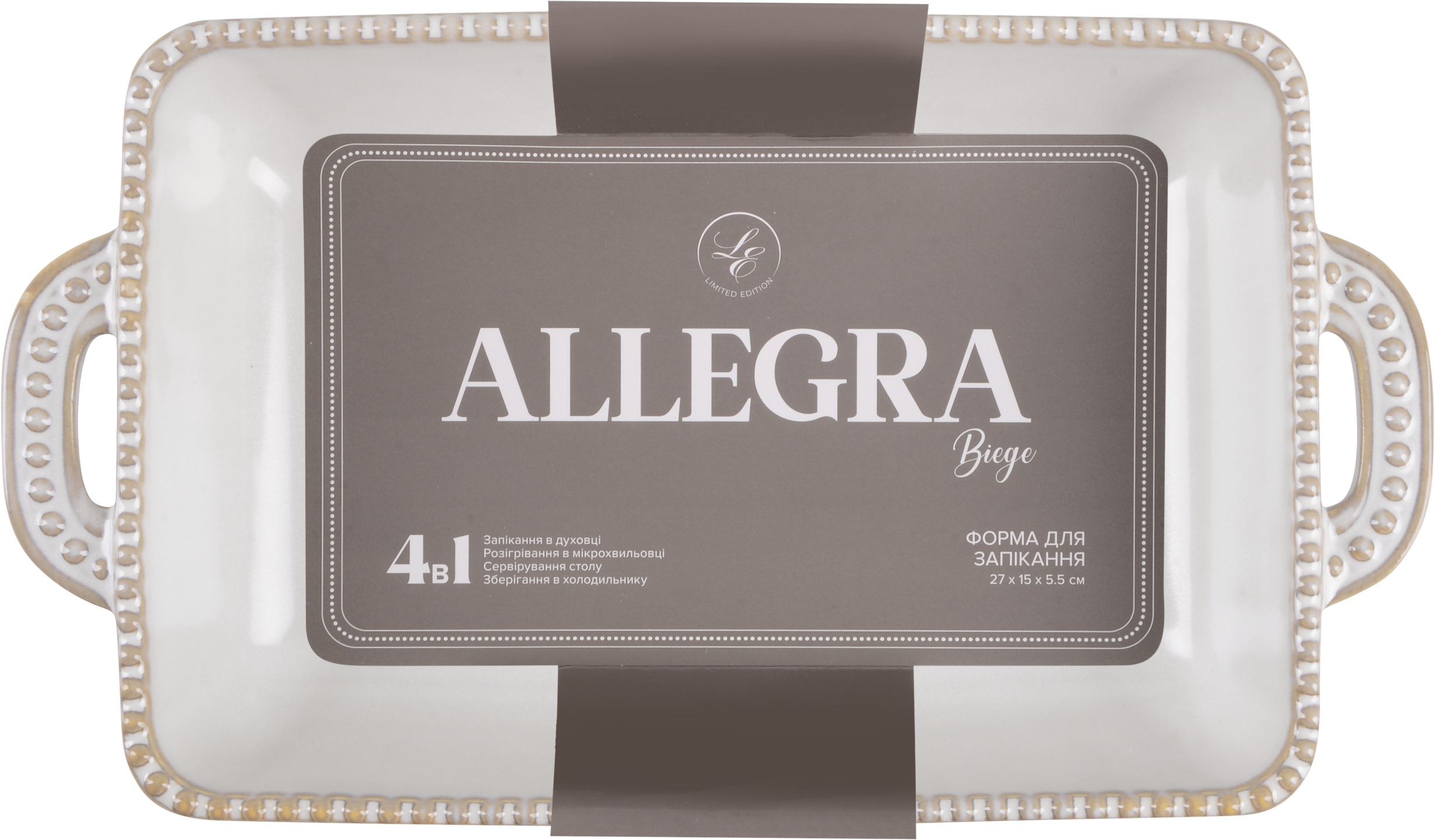 - Можна використовувати в мікрохвильовій печі та духовці при максимальній температурі 230 °C.