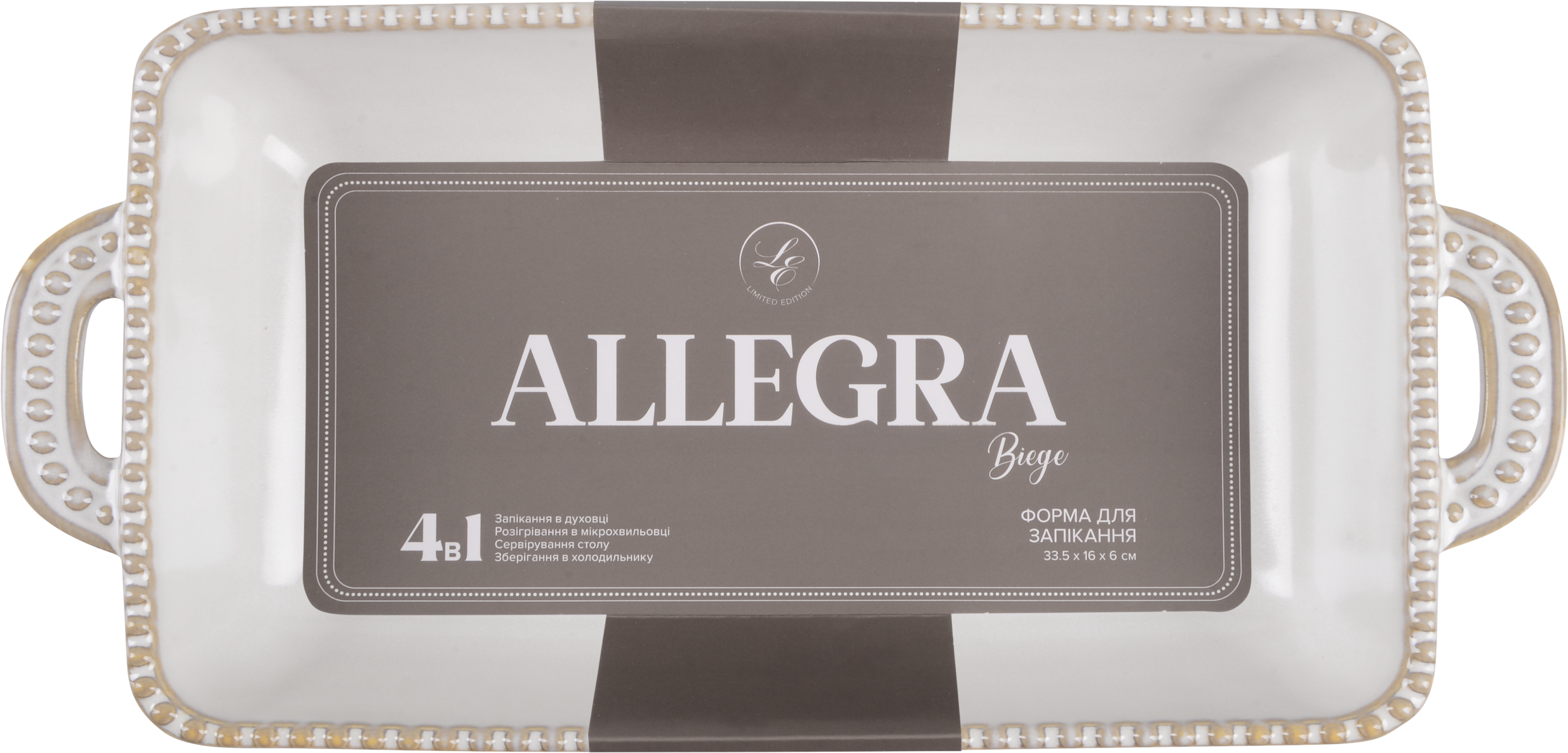 - Можна використовувати в мікрохвильовій печі та духовці при максимальній температурі 230 °C.